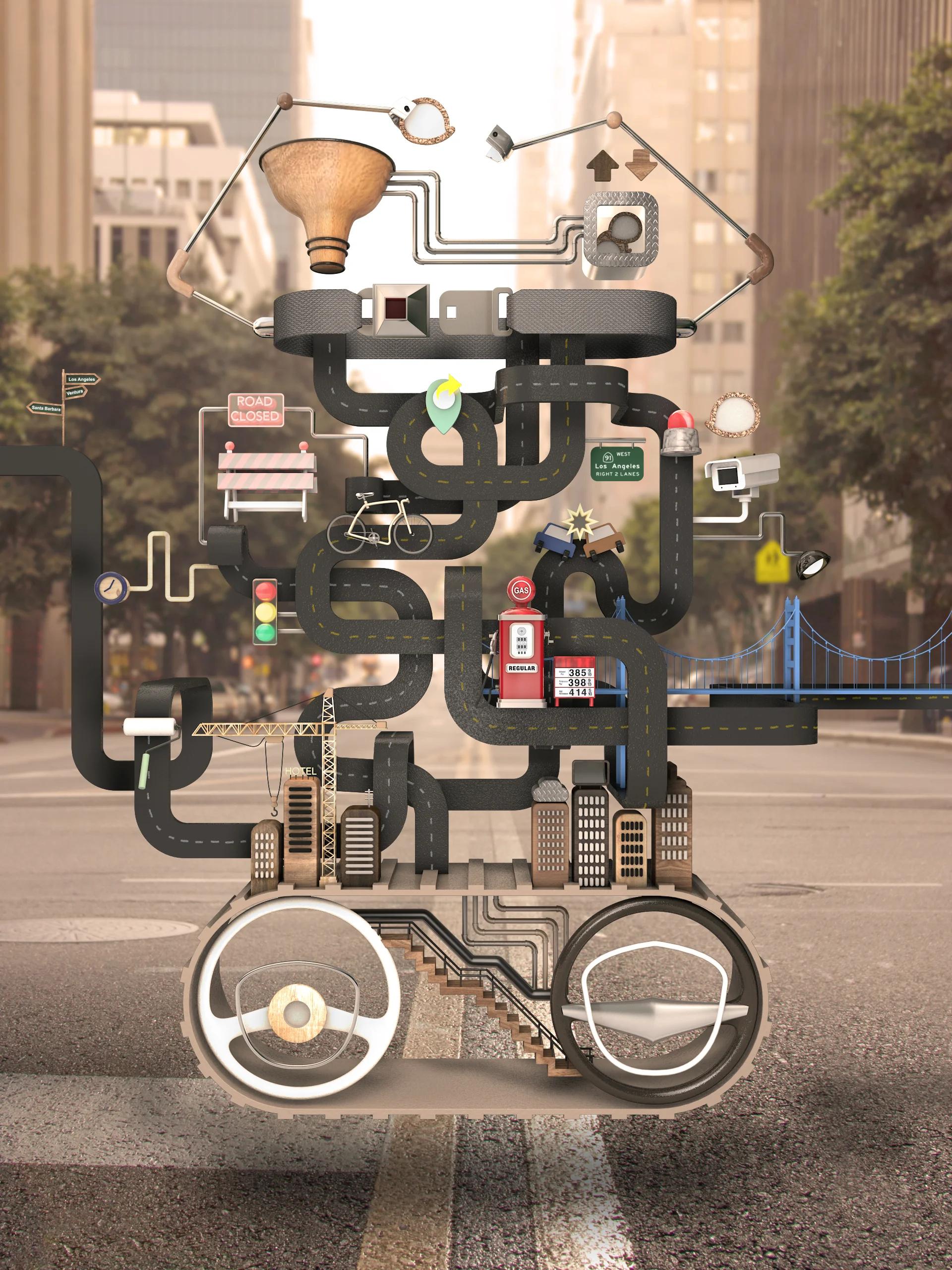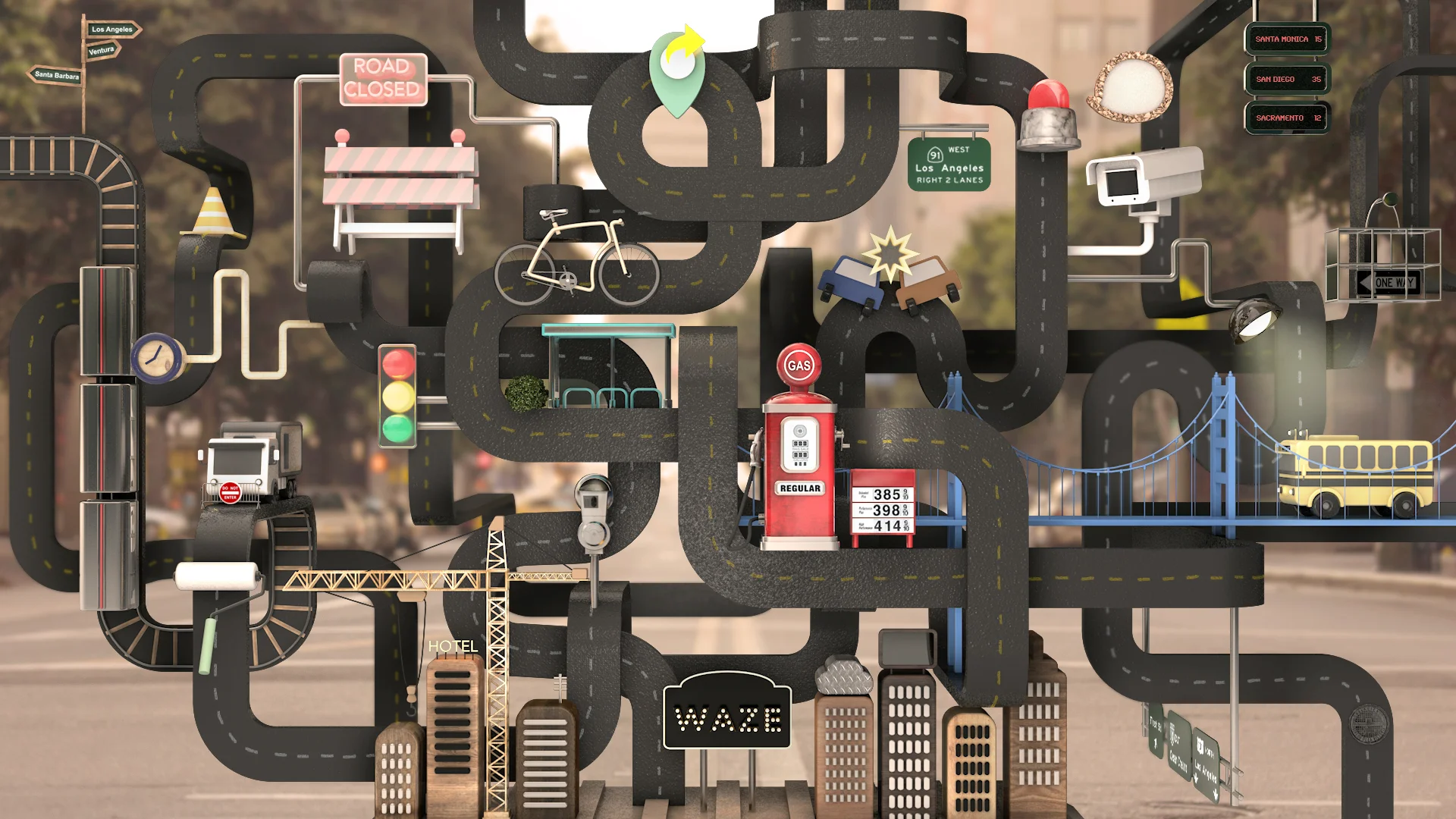 Style frames for Waze. Waze is one of the largest community-based traffic and navigation apps. Drivers can share realtime traffic and road information with other drivers in the same area, saving time and gas money. This piece describes relationship between people, interacting each other in the new type of community.